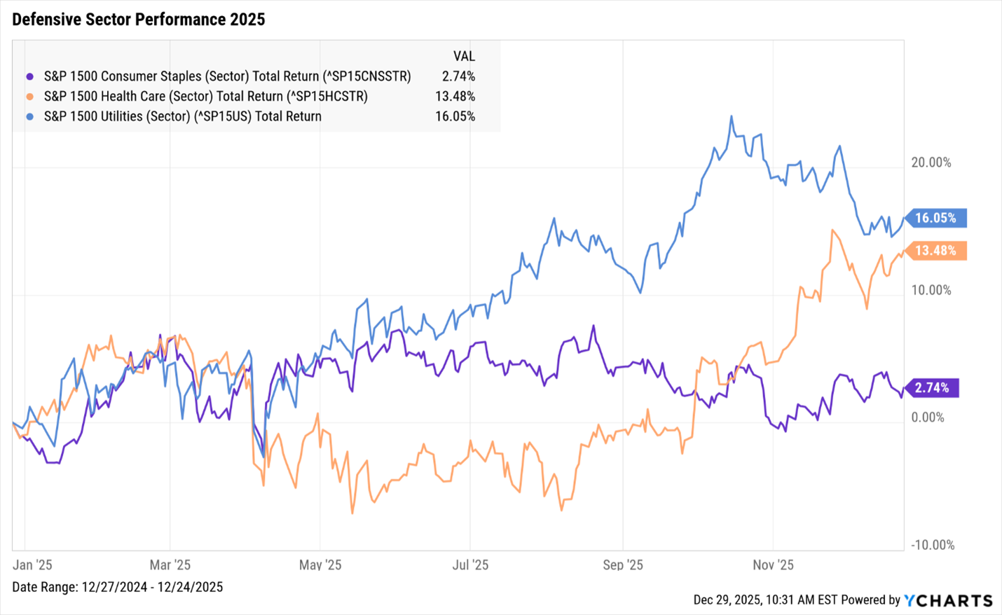 As concerns about stretched valuations in AI-focusedcompanies mounted, investors shifted to a more defensive posture. Capitalrotated into sectors with stable earnings, such as Healthcare and ConsumerStaples, especially toward the end of the year. Meanwhile, safe-haven assetsexperienced significant gains: Gold and Silver prices rose by over 64% and 120%, respectively, reflecting broad portfolio de-risking and skepticism aboutthe sustainability of the AI-driven rally.